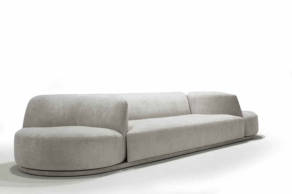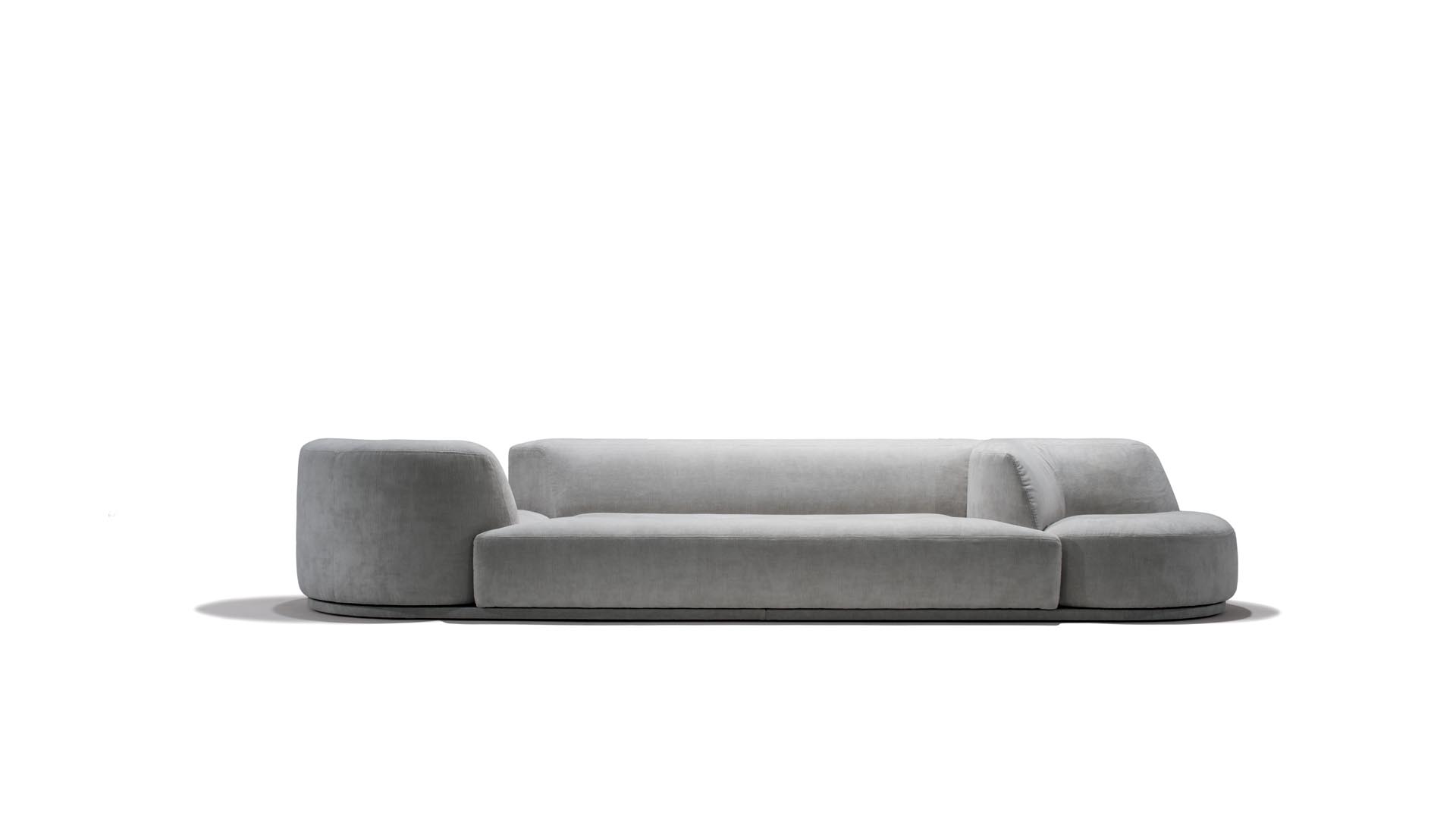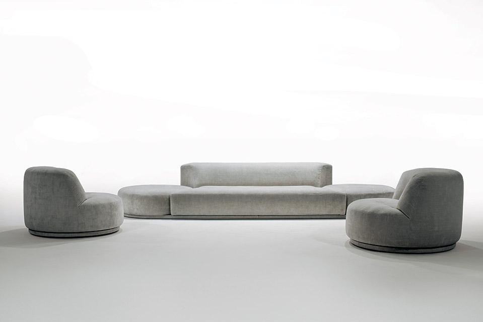 A modular and configurable sofa collection in motion, designed to meet the needs of both residential and public spaces. Its versatility is ensured by the swiveling end units and interchangeable ottomans integrated into the composition, allowing for personalized and unique configurations—perfect for moments of intimacy or social gatherings. Bordone is ideal for those seeking a solution that combines functionality and style.