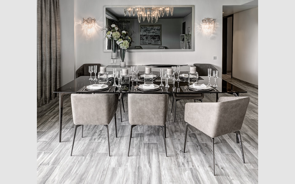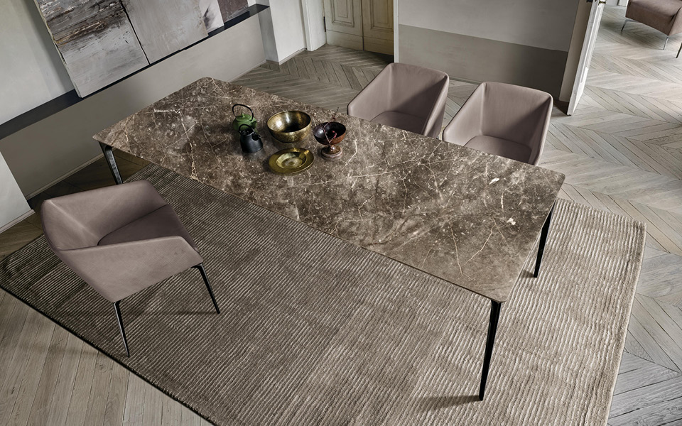 Clean lines and attentive exploration of innovative and natural raw materials like marble pair to create a surprising result. The table becomes the room’s focus, around which friendships are made.